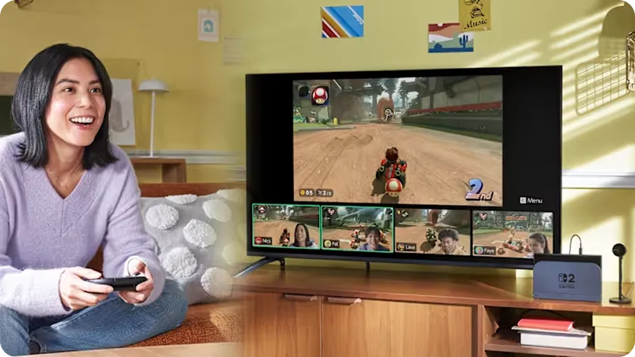 При подключении к телевизору Nintendo Switch 2 раскрывает весь потенциал, обеспечивая высокое разрешение и стабильную картинку на большом экране.